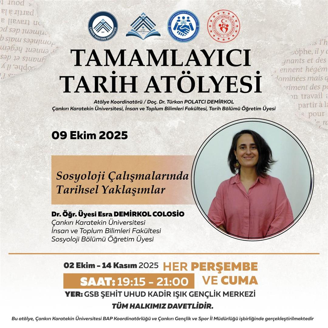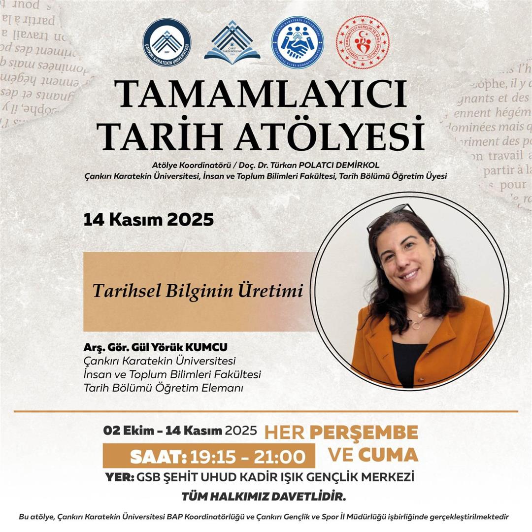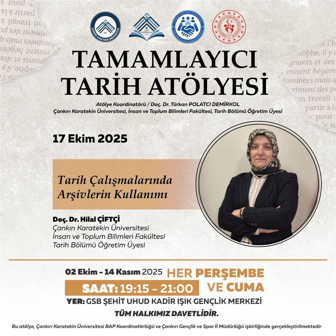 Fakültemiz Tarih Bölümü Öğretim Üyesi Doç. Dr. Türkan POLATCI DEMİRKOL koordinatörlüğünde "Tamamlayıcı Tarih Atölyesi" etkinlikleri başlıyor.