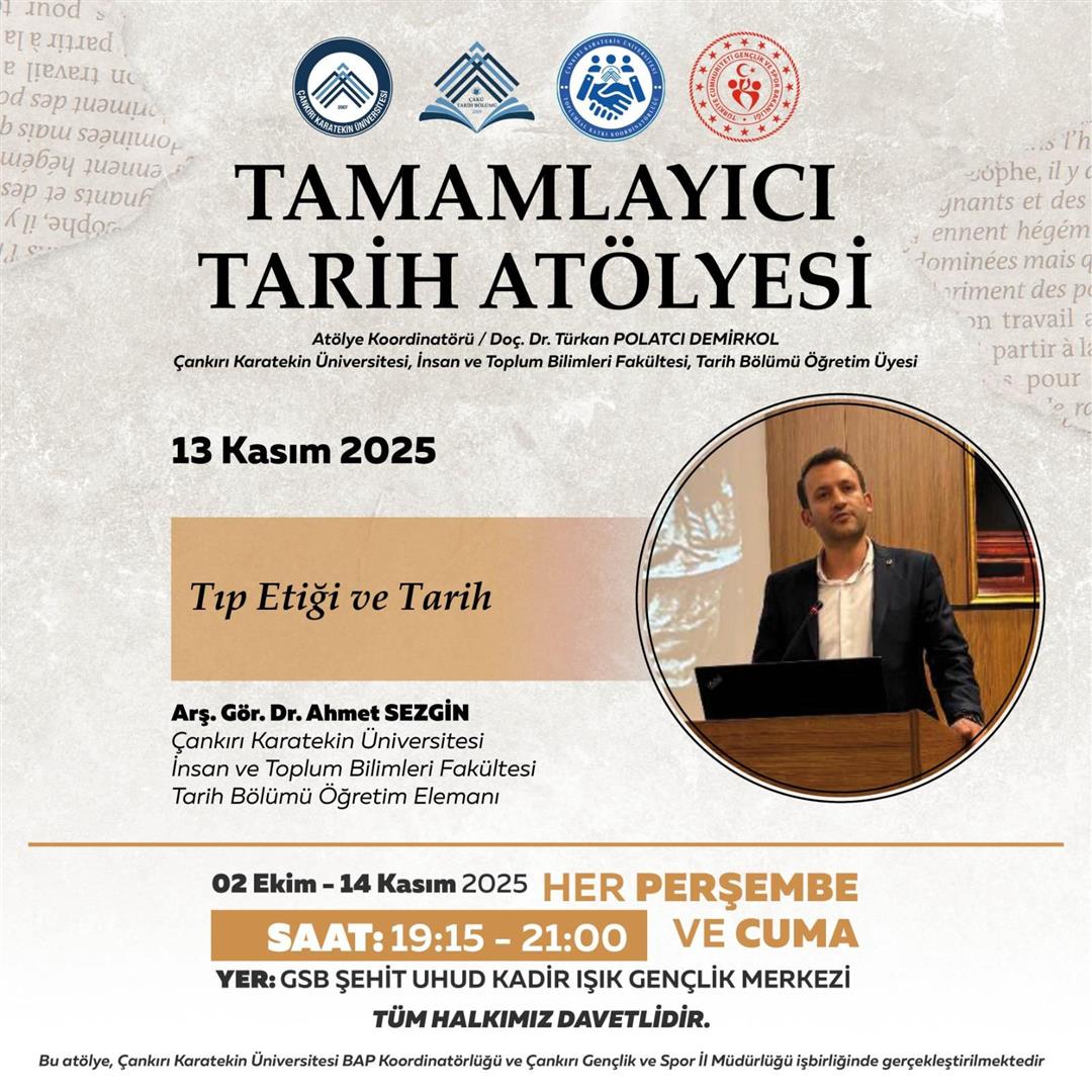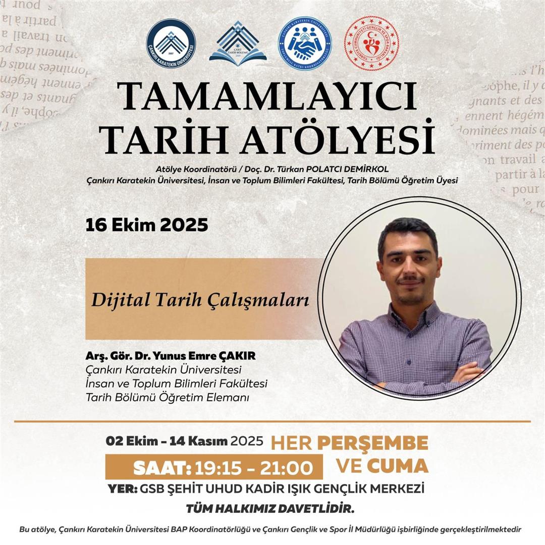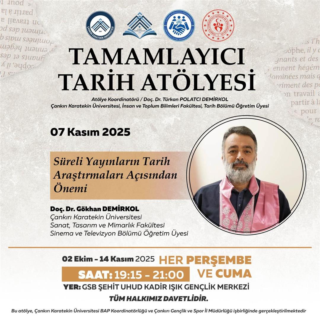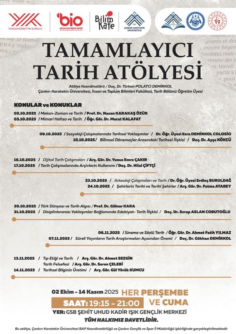Fakültemiz Tarih Bölümü Öğretim Üyesi Doç. Dr. Türkan POLATCI DEMİRKOL koordinatörlüğünde "Tamamlayıcı Tarih Atölyesi" etkinlikleri başlıyor.