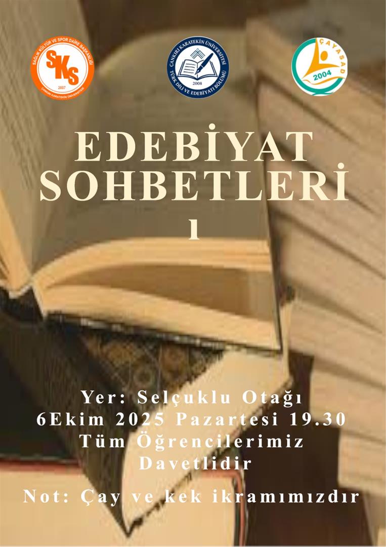 6.10.2025 tarihinde Çankırı Karatekin Üniversitesi Türk Dili ve Edebiyatı Bölümü, Çankırı Karatekin Üniversitesi Sağlık Kültür ve Spor Daire Başkanlığı, Çankırı Yazarlar ve Sanatçılar Derneği (ÇAYASAD) iş birliği ile düzenlenen “Edebiyat Sohbetleri” etkinliğinin birincisi gerçekleştirildi. Sağlık Kültür ve Spor Daire Başkanı Murat Yıldırım, Türk Dili ve Edebiyatı Bölüm Başkanı Doç. Dr. Serap Aslan Cobutoğlu, Türk Dili ve Edebiyatı Bölümü öğretim üyeleri, Türk Dili ve Edebiyatı Bölümü öğrencilerinin katılımıyla gerçekleşen “Orhan Veli Kanık” konulu şiir ve söyleşi etkinliğinde ikramlar eşliğinde sohbet edilip şiirler okundu.