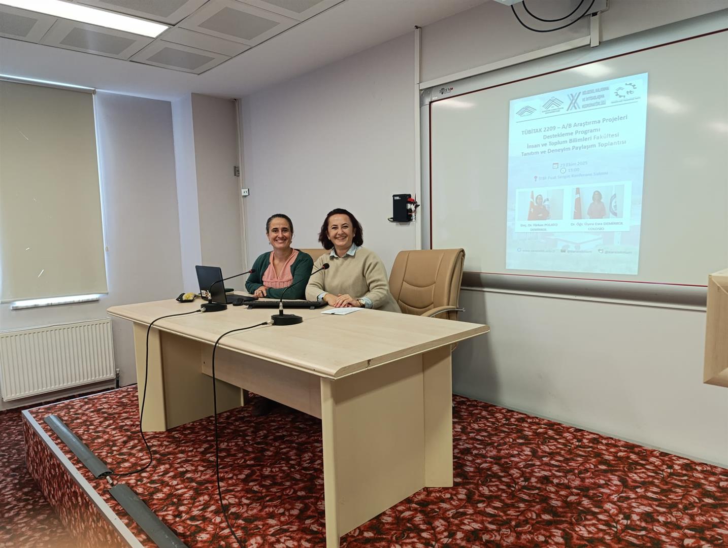 23 Ekim 2025 tarihinde, Fuat Sezgin Konferans Salonu’nda Fakültemiz Sosyoloji Bölümü öğretim üyesi ve Proje Destek Ofisi üyesi Dr. Öğr. Üyesi Esra Demirkol Colosio, TÜBİTAK 2209-A Üniversite Öğrencileri Araştırma Projeleri Destekleme Programı ile TÜBİTAK 2209-B Üniversite Öğrencileri Sanayiye Yönelik Araştırma Projeleri Desteği Programı hakkında lisans öğrencilerimize yönelik bir sunum gerçekleştirdi.